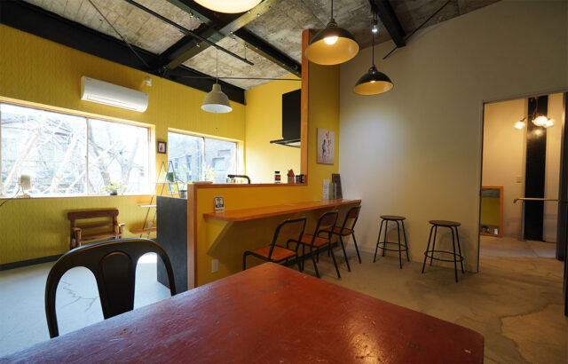 最新のシステムキッチンを備えたワーク&交流スペース。